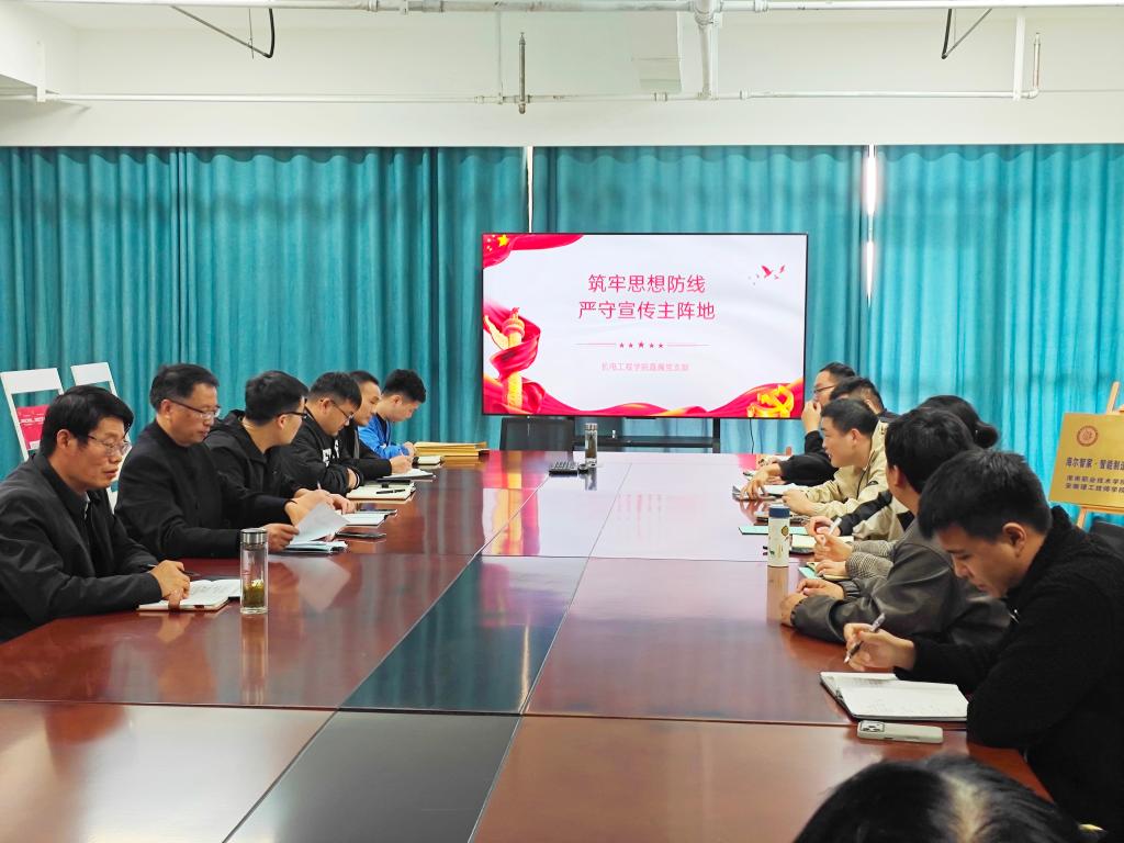 为筑牢网络意识形态安全防线,引导党员干部规范网络行为、严守宣传阵地,11月14日,机电工程学院直属党支部在春申湖校区1801党员活动室组织开展“筑牢思想防线,严守宣传主阵地”主题党日活动。活动由党支部书记柴永兴主持。