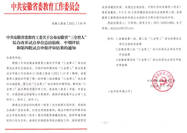 1、机电工程学院获批安徽省第四批“三全育人”综合改革试点院(系)