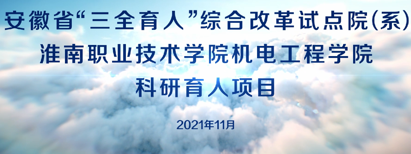 2021年4月30日,机电工程学院获批安徽省第四批“三全育人”综合改革试点院(系),学院《立足党建品牌,构建机电特色工匠型人才的“三全育人”新体系》试点项目坚持把立德树人作为中心环节,把思想政治工作贯穿教育教学各环节,实现全员全过程全方位育人。