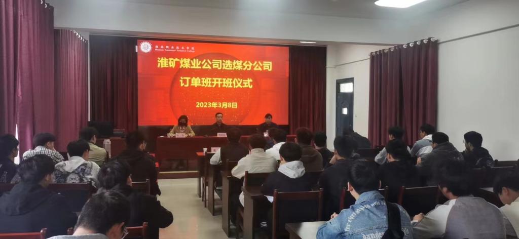 3月8日上午,机电工程学院机电一体化专业选煤公司订单班在4302隆重举行开班仪式。选煤分公司党委书记毕昌红、学校副校长胡道成出席会议并作重要讲话。
