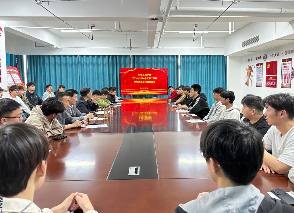 为进一步提高教学质量,加强教学信息反馈,完善沟通机制,2024年4月17日下午,机电工程学院在1801会议室召开了学生信息员座谈会。机电工程学院领导班子、教师代表及42位学生信息员参加了此次座谈会。