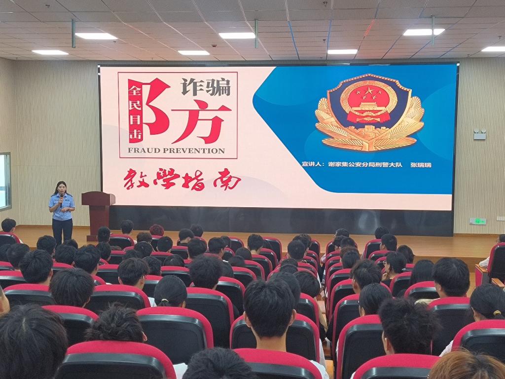 在信息时代,电信诈骗日益猖獗,为切实有效提高学生对电信诈骗的认知度,增强防范意识,使学生更加警觉,确保学生的财产安全和隐私安全。我校于9月10日下午在教学楼1307多媒体会议室举办了防诈骗教学指南专题讲座,机电工程学院全体2024级新生代表参加讲座。本次讲座由春申湖校区综合办公室主任戴勇主持,谢家集公安分局刑警大队张瑞瑞警官主讲。