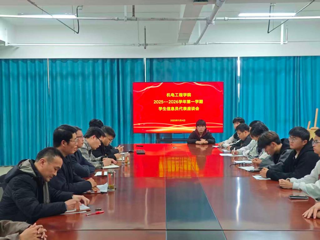 为不断提升教育教学质量,优化校园服务保障,2025年11月5日,机电工程学院组织召开了2025-2026学年第一学期学生信息员代表座谈会。会议由机电学院院长宋继祥主持。学生信息员代表是学院了解教学动态的重要窗口,也是连接师生、推动问题解决的关键纽带。会议围绕教学管理与后勤服务两大主题展开,师生齐聚一堂,坦诚交流,共同探讨改进路径。