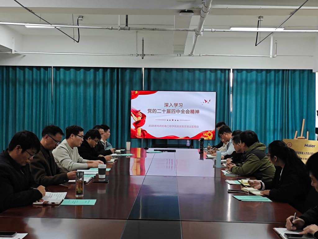 2025年10月31日,机电工程学院直属党支部在春申湖校区1801党员活动室组织全体党员召开“深入学习党的二十届四中全会精神”主题党日活动。旨在引导全体党员深刻领会全会核心要义,统一思想行动,为贯彻落实“十五五”规划夯实政治基础。支部全体党员参会,会议由党支部书记柴永兴主持。
