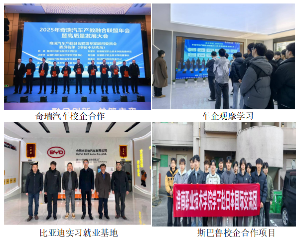 积极拓展产教融合,与比亚迪汽车、奇瑞汽车、江淮汽车、国轩高科等行业头部企业建立了良好合作关系。目前正全力推动与奇瑞汽车等企业共建“新能源汽车产业学院”、设立“订单班”,并探索“现场工程师”联合培养模式,为学生提供优质的实习与就业通道。毕业生可在新能源汽车制造企业、汽车零部件生产企业、新能源汽车销售企业、新能源汽车维修企业(4S店)及其他相关制造行业就业,从事新能源汽车制造、维修与管理、汽车零部件加工、新能源汽车销售与代理、汽车保险与理赔等工作。随着行业智能化升级,兼具电子技术与客户服务能力的复合型人才更受青睐,近几年新能源汽车技术专业毕业生就业率均超95%。